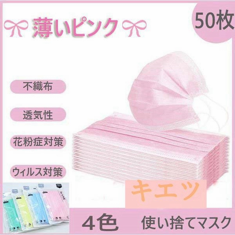 ピンクマスク 50枚 使い捨てマスク 10個包装 5袋 可愛い ウィルス対策 三層構造 不織布マスク 蒸し暑くない おしゃれ レディース 女性 薄いピンク マスク 通販 Lineポイント最大get Lineショッピング